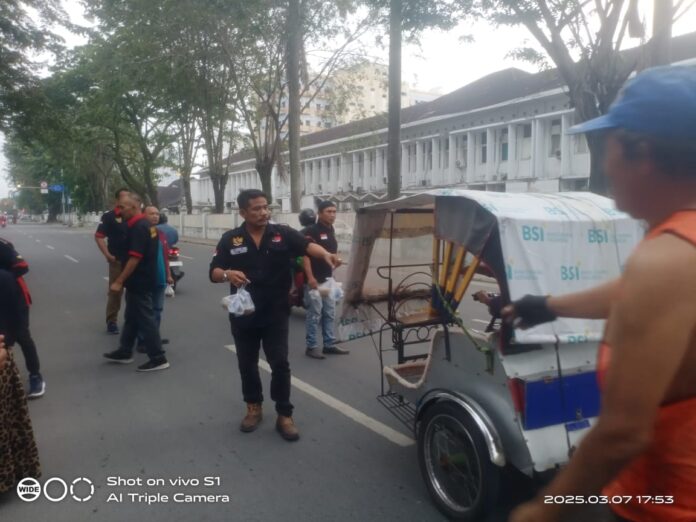 Medan | GeberNews.com – Menyambut bulan suci Ramadhan 1446 Hijriah, Adi Warman Lubis, Ketua Dewan Pimpinan Pusat (DPP) Tim Kenziro Kompas Nusantara (TKN), menggelar aksi sosial dengan membagikan ratusan paket takjil kepada masyarakat di Jalan H.M. Yamin, Medan, Jumat (7/3/2025).
