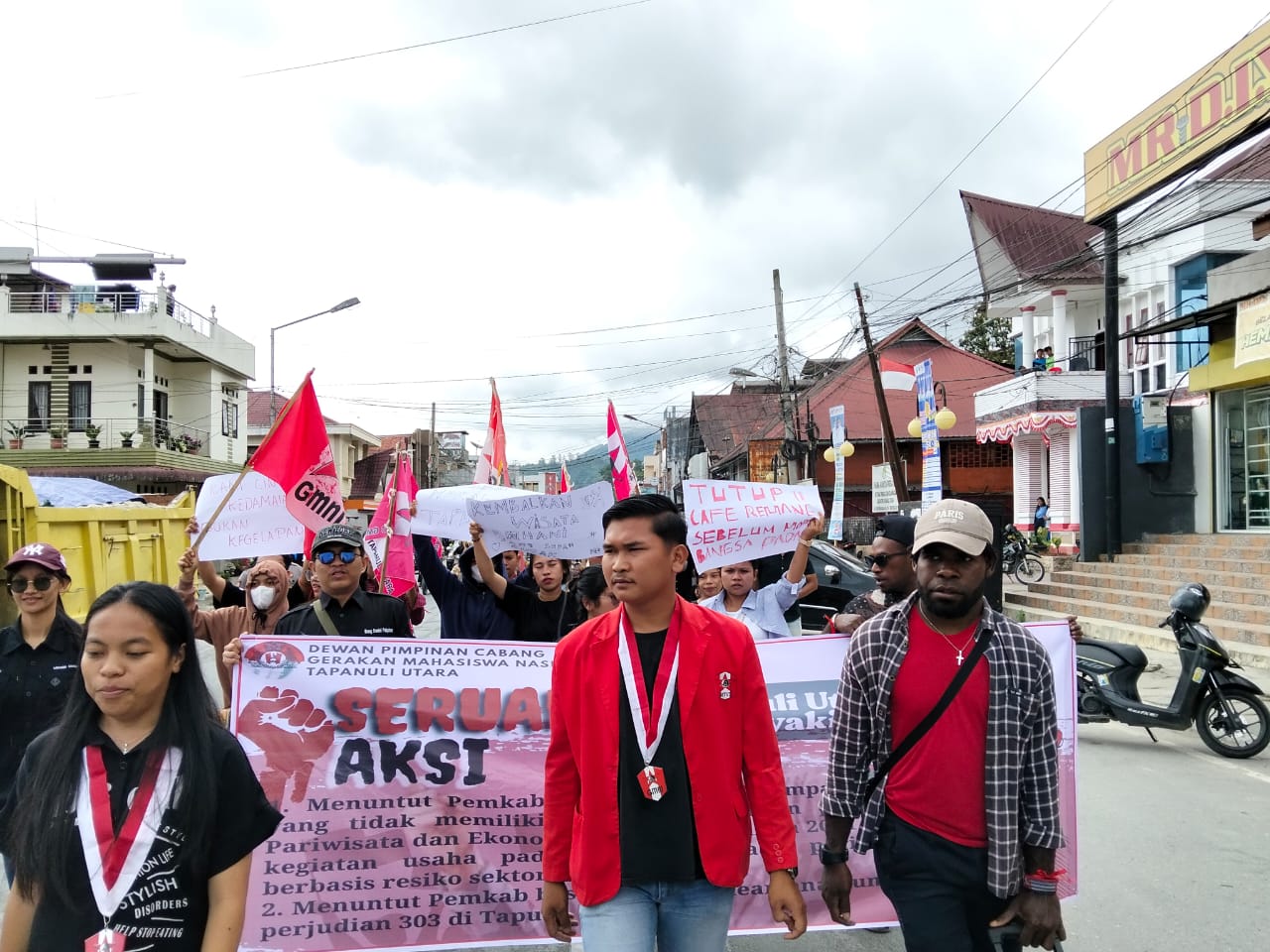 Aksi dimulai dari Taman Lonceng Tarutung, kemudian massa melakukan long march menuju Markas Kepolisian Resor (Mapolres) Tapanuli Utara (Taput) dan Kantor Bupati Taput. Dalam orasinya, massa GMNI menyerukan agar pemerintah daerah segera menutup seluruh tempat hiburan malam yang tidak memiliki izin resmi, sebagaimana diatur dalam Peraturan Menteri Pariwisata dan Ekonomi Kreatif Nomor 4 Tahun 2021 tentang Standar Kegiatan Usaha pada Penyelenggaraan Perizinan Berusaha Berbasis Risiko Sektor Pariwisata.