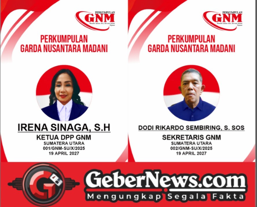 Medan | GeberNews.com — Ketua Dewan Pimpinan Provinsi (DPP) Perkumpulan Garda Nusantara Madani (GNM) Provinsi Sumatera Utara, Irena Sinaga, S.H., bersama Sekretaris DPP GNM Sumut, Dodi Rikardo Sembiring, S.Sos., menyerukan pentingnya penguatan peran kontrol sosial di tengah masyarakat sebagai bentuk kepedulian dan tanggung jawab bersama dalam menjaga keadilan serta mengawal suara rakyat kecil.
