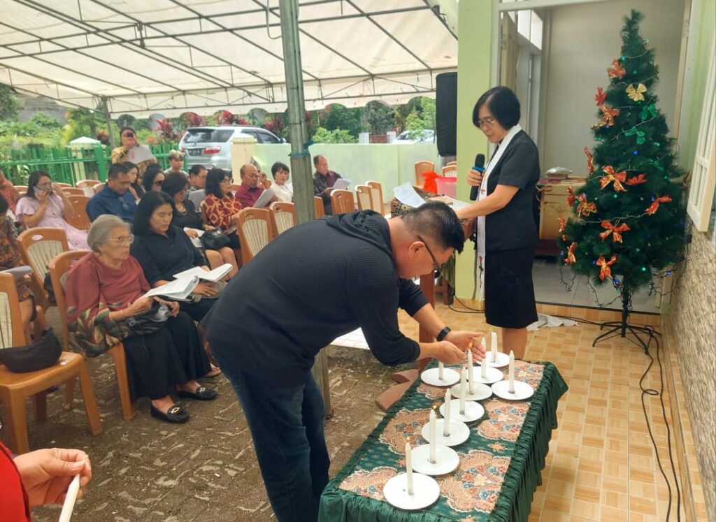 Prosesi ibadah semakin bermakna dengan penyalaan lilin Natal yang dilakukan para sesepuh dan perwakilan keluarga dari berbagai wilayah. Mereka antara lain Ibu Sartje Kalesaran, 87 tahun, Ibu Gerda Wehantouw, Ibu Jeane M. Kures, Ibu Irene Kumeang, Bapak Levi Ngala, Bapak Donald Wehantouw, serta Ibu Fidelia Supit. Penyalaan lilin ini menjadi simbol estafet iman, harapan, dan persatuan keluarga besar Wehantouw.