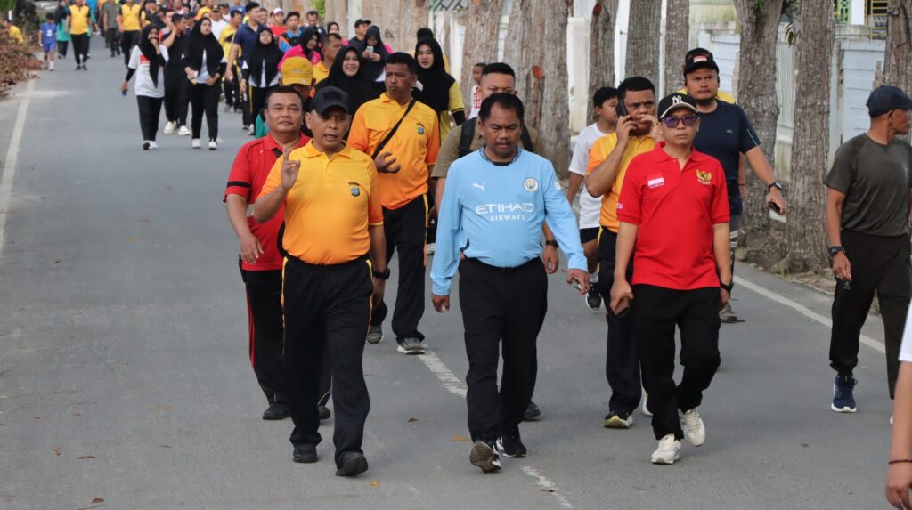 Gerak jalan dimulai pukul 07.30 WIB dan dilepas langsung oleh Bupati Sergai, Darma Wijaya, bersama Kapolres Sergai, Jhon Sitepu, S.I.K., M.H. Peserta menempuh rute sejauh dua kilometer dengan antusiasme tinggi, menandai awal kegiatan yang dikemas meriah oleh jajaran Polres Sergai.