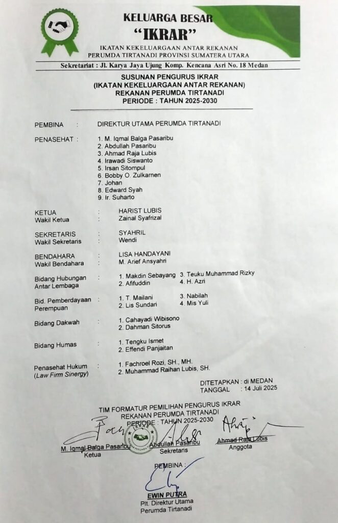 Medan | GeberNews.com – Ikatan Kekeluargaan Antar Rekanan (IKRAR) Perumda Tirtanadi menegaskan komitmennya untuk tetap mendukung manajemen perusahaan dalam meningkatkan pelayanan kepada masyarakat pelanggan air. Sebagai mitra kerja dalam pengadaan barang dan jasa, keberadaan IKRAR telah berjalan sejak tahun 2000 dan terus berperan menyatukan visi anggotanya demi mendukung kebijakan serta program strategis Perumda Tirtanadi.