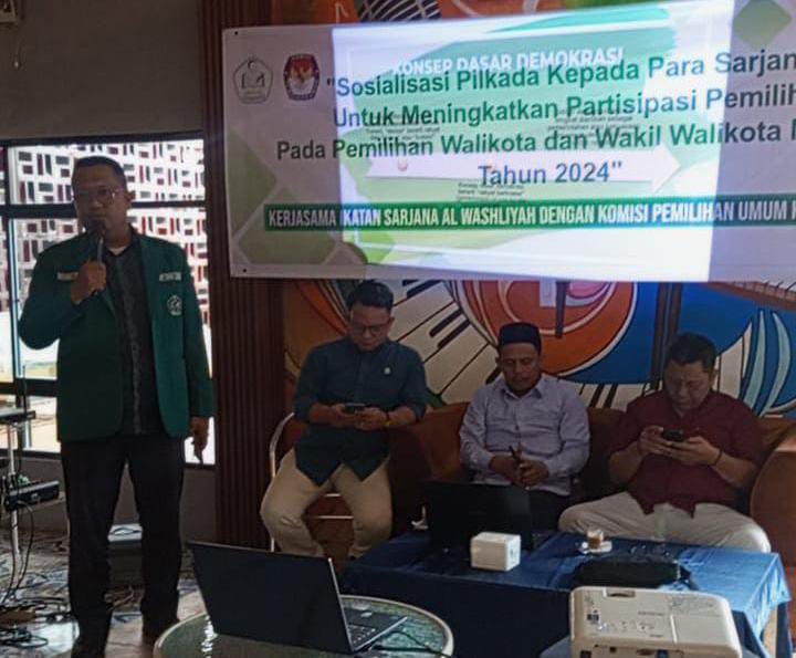 Medan | GeberNews.com – Pimpinan Wilayah Ikatan Sarjana Al Washliyah Sumatera Utara (PW ISARAH Sumut) berkolaborasi dengan Komisi Pemilihan Umum (KPU) Kota Medan mengadakan sosialisasi untuk meningkatkan partisipasi pemilih dari kalangan sarjana dalam Pilkada Medan 2024. Acara ini digelar pada Sabtu (02/11/24) di Stadion Cafe, Jalan Teladan, Medan.