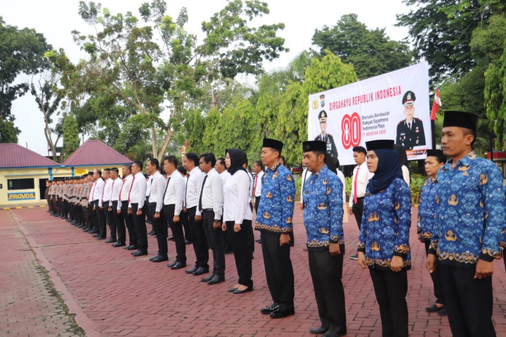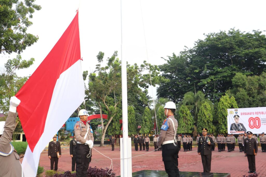 Langkat | GeberNews.com – Polres Langkat menggelar upacara peringatan Hari Ulang Tahun ke-80 Kemerdekaan Republik Indonesia di halaman Mako Polres Langkat, Minggu 17 Agustus 2025.