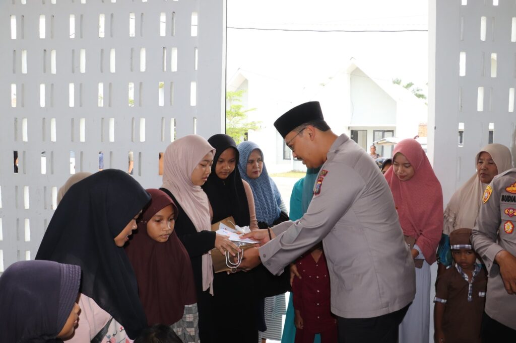 Kapolres Langkat, AKBP David Triyo Prasojo, S.H., S.I.K., M.Si., hadir langsung bersama Pejabat Utama (PJU) Polres Langkat dan Kapolsek Stabat, membagikan santunan sebagai bentuk kasih sayang dan kepedulian Polri terhadap anak-anak yang membutuhkan perhatian lebih.