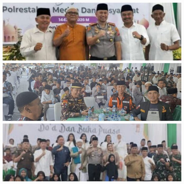 Dalam sambutannya, Kapolrestabes Medan Kombes Pol Calvijn Simajuntak mengajak seluruh elemen masyarakat untuk terus menjaga keamanan dan ketertiban di Kota Medan, terlebih di momentum Ramadhan yang sarat dengan nilai kebersamaan, persaudaraan, dan kepedulian sosial.