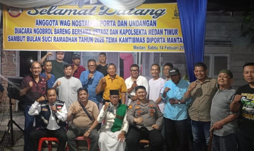 Medan | GeberNews.com — Kapolsek Medan Timur Kompol Agus Butar Butar memperkuat sinergitas keamanan dan ketertiban masyarakat (Kamtibmas) melalui kegiatan silaturahmi bersama masyarakat Jalan Aluminium I serta Ketua Umum (Ketum) Dewan Pimpinan Pusat (DPP) TKN Kompas Nusantara, Adi Warman Lubis dalam rangka menyambut datangnya Bulan Suci Ramadan, pada Sabtu, 14 Februari 2026.