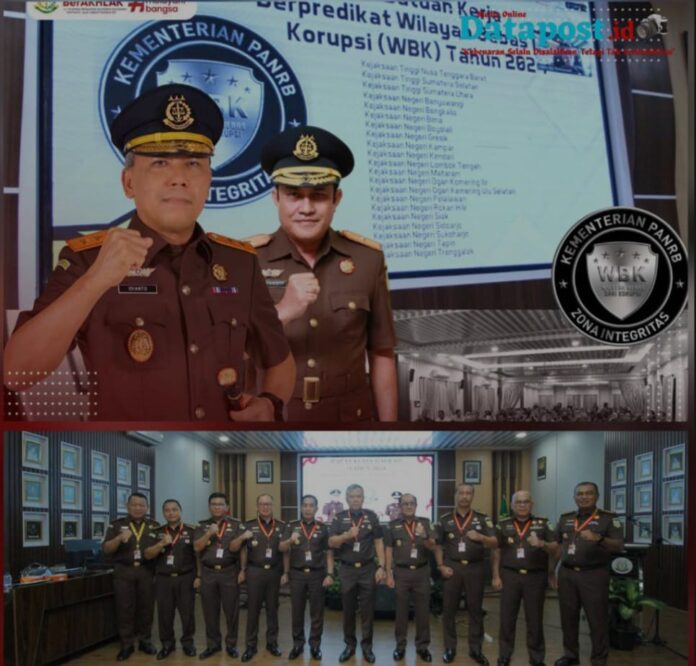 Medan | GeberNews.com – Kejaksaan Tinggi Sumatera Utara (Kejati Sumut) berhasil meraih predikat Wilayah Bebas Korupsi (WBK) Tahun 2024 dari KemenPAN-RB. Penghargaan ini diumumkan dalam kegiatan Halo RB Januari 2025 yang dipimpin Kepala Biro Perencanaan (Karocana) Kejaksaan Agung RI, Tiyas Widiarto, S.H., M.H., melalui zoom meeting, Selasa (23/01/2025), di Aula Sasana Cipta Kerta, Kantor Kejati Sumut, Jalan A.H. Nasution, Medan.