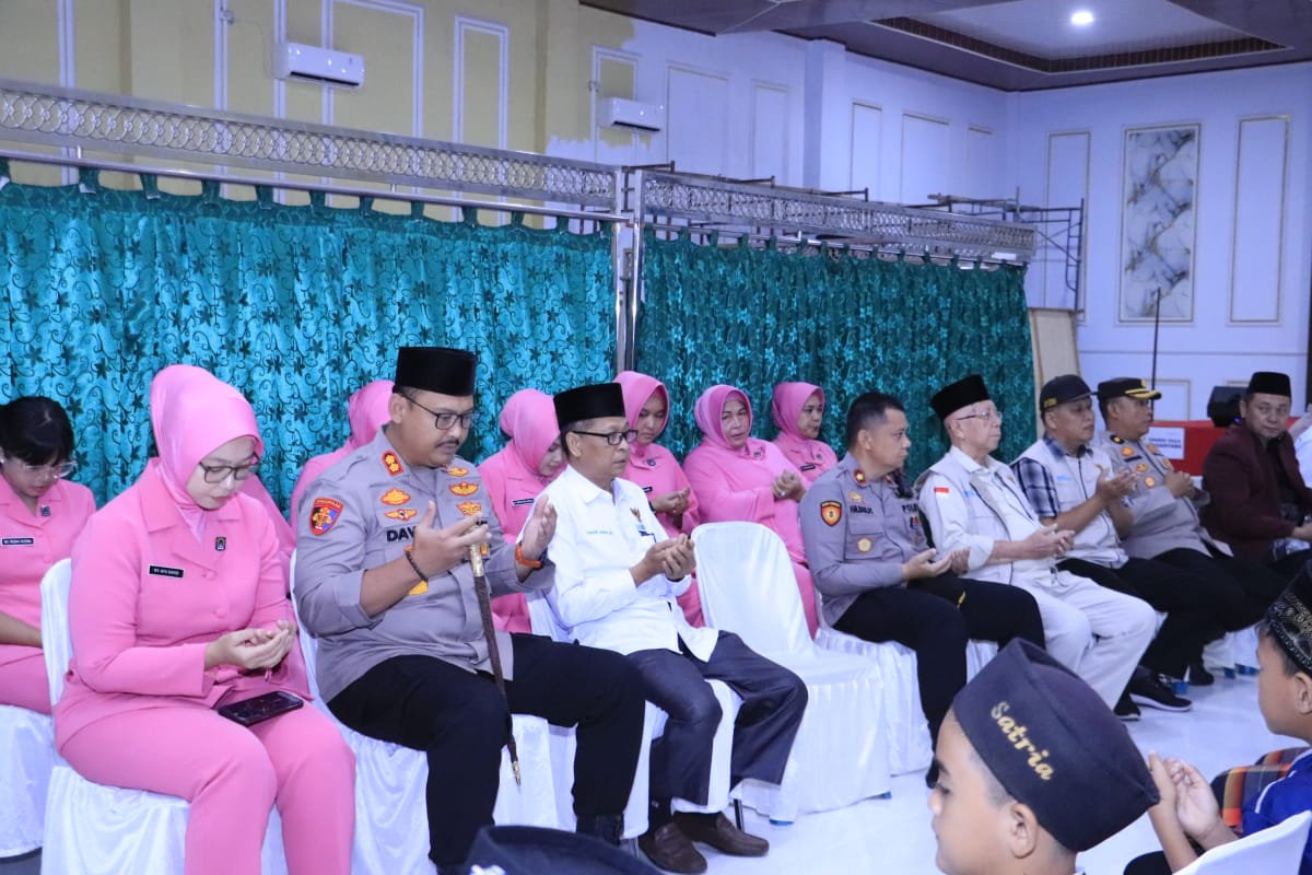 Kapolres Langkat, AKBP David Triyo Prasojo, S.H., S.I.K., M.Si., hadir langsung bersama Wakapolres Kompol Husnil Mubarok Daulay, S.H., S.I.K., M.I.K., Ketua Baznas Langkat Thantawi Jauhari, M.A., Ketua PPNI Langkat H. Ansyari, Ketua IDI Cabang Langkat dr. Agus Salim, M.Ked. ORL-HNS., Sp.THT-BKL., Ketua Bhayangkari Polres Langkat Ny. Ayu David, serta para pejabat utama dan kapolsek jajaran.