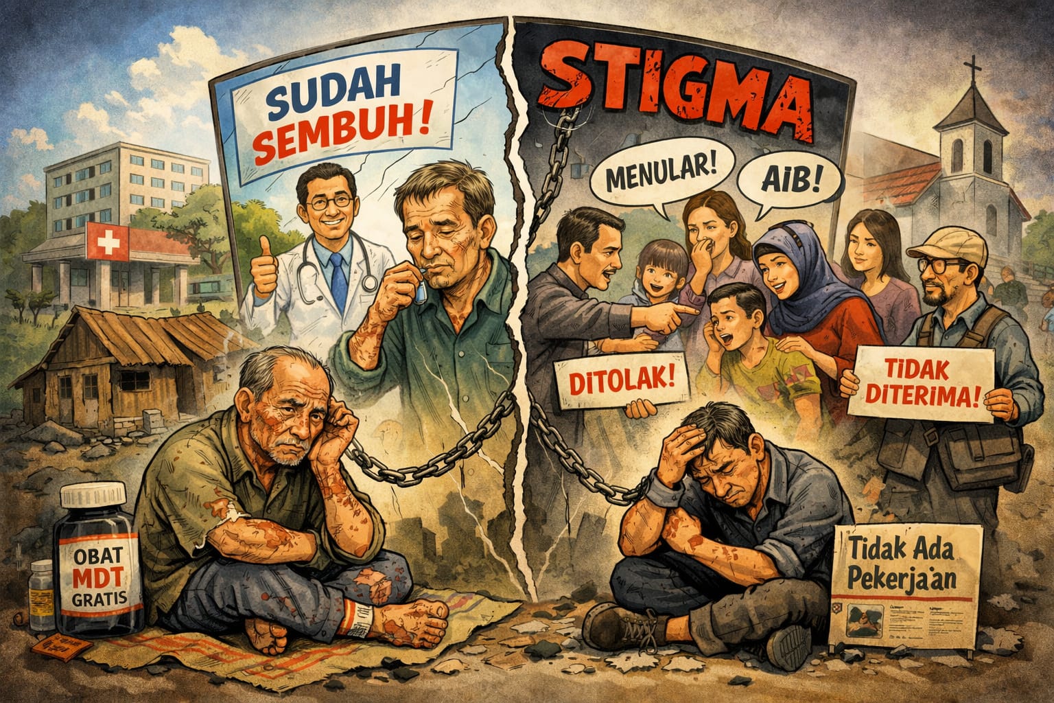 Kusta: sembuh secara medis, terbunuh oleh stigma sosial. Di tengah laju kemajuan teknologi kesehatan dan keberhasilan dunia medis menaklukkan berbagai penyakit berat, kusta justru masih menjadi ironi yang memalukan. Penyakit ini sebenarnya telah lama dapat diobati, namun cara pandang masyarakat yang keliru membuatnya tetap menakutkan. Kusta bukan hanya menyerang saraf dan kulit, tetapi juga merusak martabat, meruntuhkan rasa percaya diri, dan mengasingkan penderitanya dari kehidupan sosial yang semestinya mereka jalani secara setara.