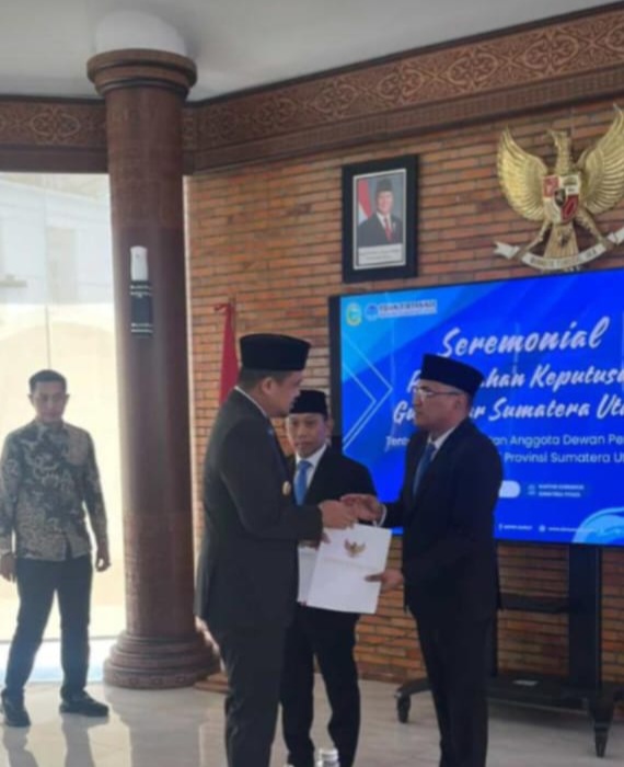 Medan | GeberNews.com – Gubernur Sumatera Utara (Sumut), Muhammad Bobby Afif Nasution, secara resmi melantik dua anggota baru Dewan Pengawas Perusahaan Umum Daerah (Perumda) Tirtanadi, Jumat (8/5/2025). SK pengangkatan diserahkan langsung di Kantor Gubernur Sumut, Jalan Pangeran Diponegoro No. 30, Medan.
