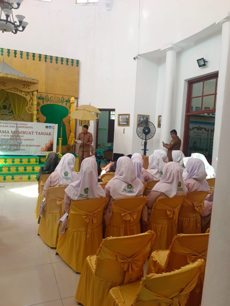 Langkat | GeberNews.com — Semangat melestarikan budaya Melayu terus digelorakan Dinas Kebudayaan dan Pariwisata (Disbudpar) Kabupaten Langkat. Salah satu langkah konkritnya adalah melalui pelatihan Belajar Bersama Membuat Tanjak yang diadakan di Museum Daerah Kabupaten Langkat, Gedung Kerapatan Kesultanan Langkat. Kegiatan yang dimulai pada Selasa, 6 Mei 2025 ini menyasar pelajar tingkat SLTA sederajat dan akan berlangsung dalam empat sesi pertemuan.