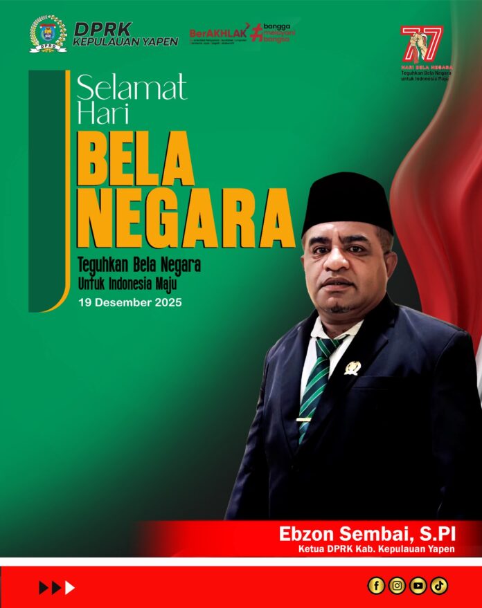 Kepulauan Yapen | GeberNews.com – Semangat Bela Negara untuk Indonesia Maju Peringatan Hari Bela Negara Ke-77 digelar oleh Polres Kepulauan Yapen dengan mengusung tema “Teguhkan Bela Negara untuk Indonesia Maju” sebagai momentum memperkuat komitmen kebangsaan dan meningkatkan kesadaran seluruh elemen masyarakat akan pentingnya bela negara, Jumat, 19 Desember 2025.