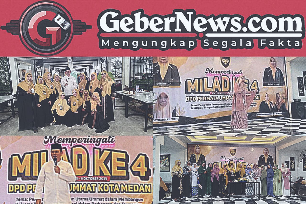 Medan | GeberNews.com – Milad ke-4 Kelompok Pengajian Permata Umat Kota Medan yang digelar pada Minggu, 2 November 2025 di Teladan Kupi, kawasan Stadion Teladan, berlangsung meriah, hangat, dan penuh kekeluargaan. Panitia menyampaikan kepada redaksi bahwa seluruh rangkaian kegiatan berjalan sukses dan mendapat dukungan dari berbagai pihak.