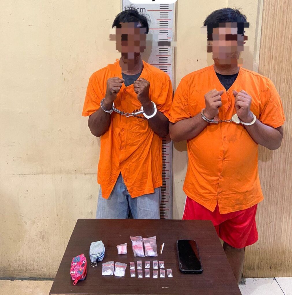 Selain menangkap kedua tersangka, polisi juga mengamankan barang bukti berupa 2 paket sabu besar, 11 paket sabu kecil, sejumlah dompet, sekop sabu, klip kosong, serta beberapa barang lainnya. Kedua tersangka mengaku sebagai pemilik barang bukti tersebut.
