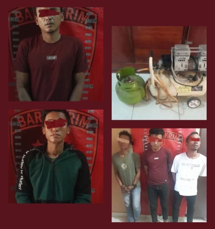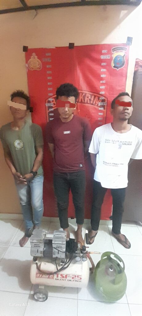 Ketiganya diduga terlibat dalam pencurian kompresor dan tabung gas milik Mardianto, warga setempat.