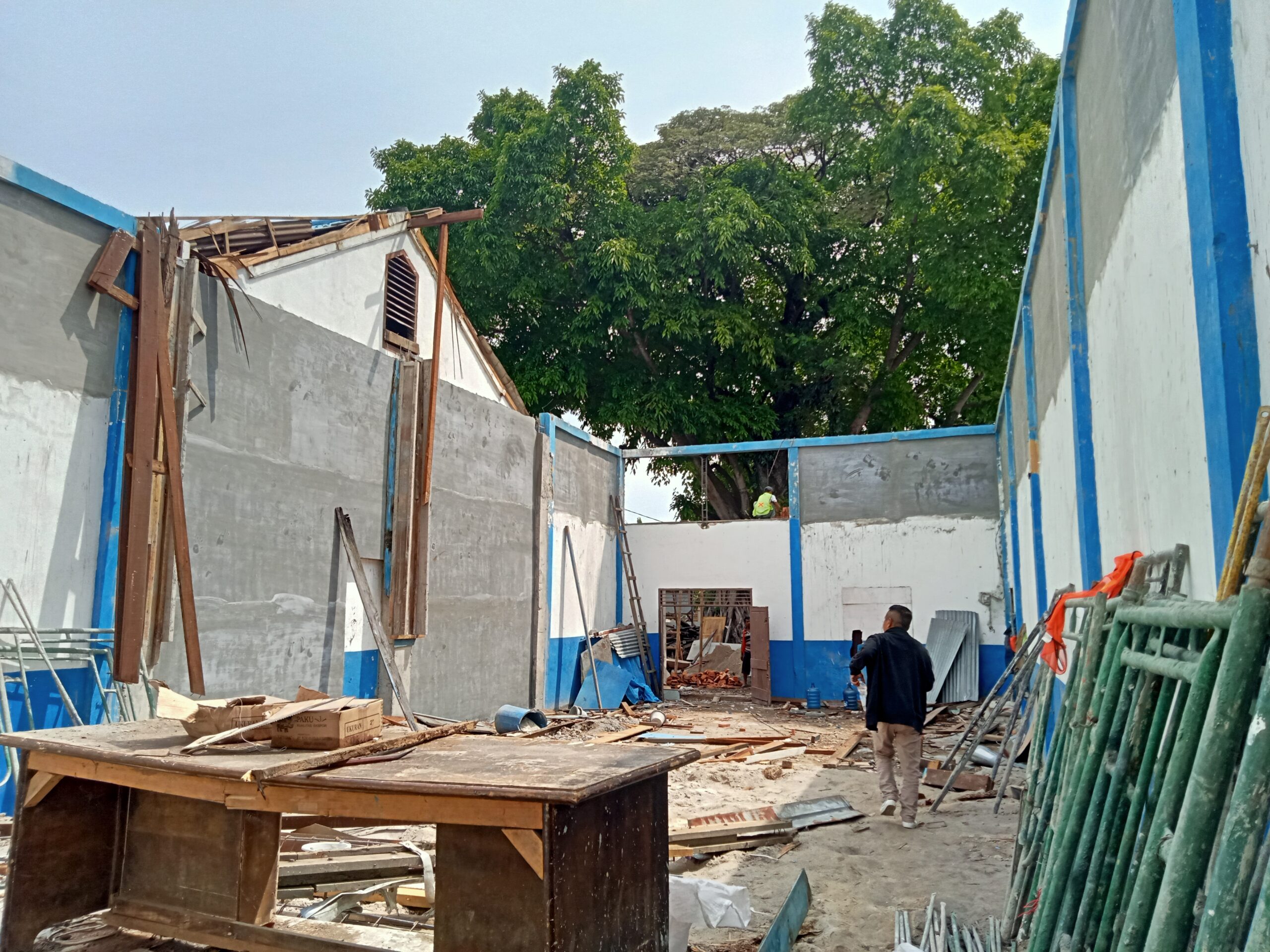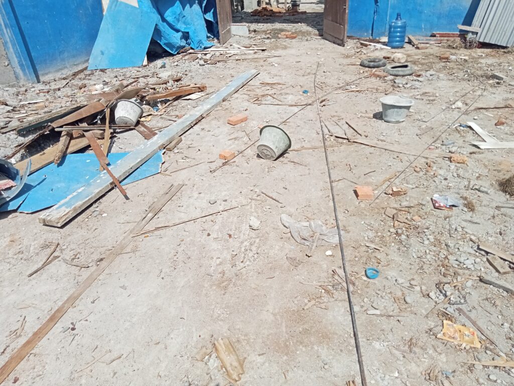 Batu bata tipis, semen bercampur pasir berlebihan, hingga keramik berkualitas rendah menjadi pemandangan yang mudah ditemui di lokasi. Lebih mengejutkan lagi, menurut sumber di lapangan, para pekerja beberapa kali terlihat menggunakan air comberan untuk mengaduk pasir dan semen — tindakan yang jelas melanggar etika konstruksi dan berpotensi menurunkan kekuatan bangunan.
