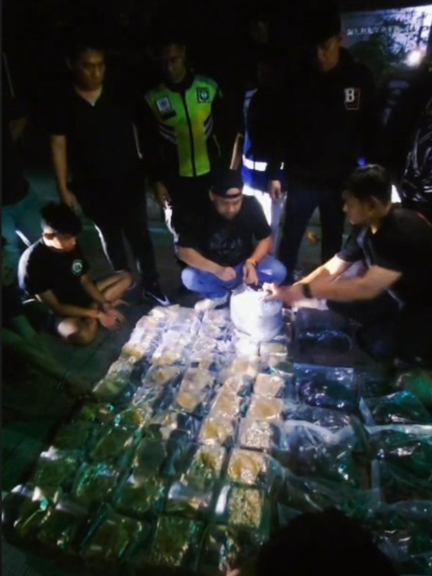 Dari tangan pelaku, polisi mengamankan barang bukti berupa puluhan kilogram sabu yang dikemas rapi dengan bungkus bergambar durian, diduga sebagai upaya mengelabui petugas.