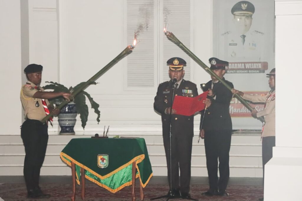 Sergai | GeberNews.com — Menyambut Hari Ulang Tahun ke-80 Kemerdekaan Republik Indonesia, Pemerintah Kabupaten Serdang Bedagai (Sergai) bersama unsur Forkopimda menggelar Upacara Kehormatan dan Renungan Suci pada Sabtu malam, 16 Agustus 2025 sekira pukul 23.45 WIB di halaman Kantor Bupati Sergai.