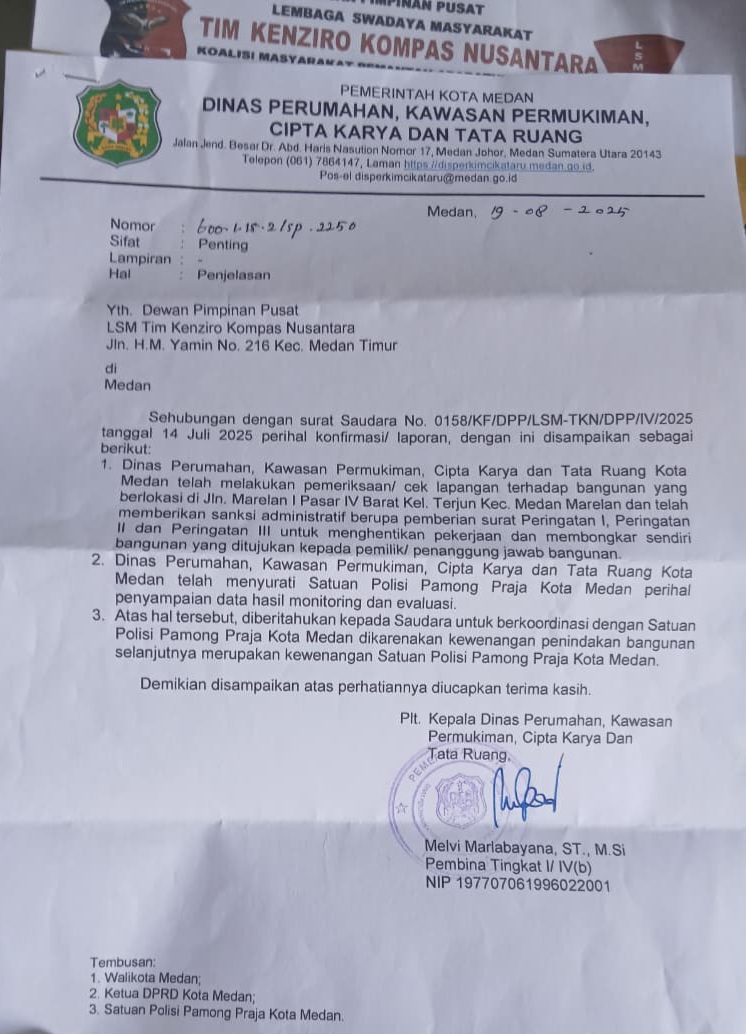 Begitu juga dengan Satpol PP Kota Medan, yang sudah menerima tiga kali surat peringatan dari Dinas Perkim, namun hanya memberikan garis dan pembangunan tetap berjalan. “Kami menduga ada permainan antara pengembang dan Satpol PP. Pembongkaran bangunan tanpa PBG sudah memenuhi unsur dan prosedur, tapi kenapa tidak ditindak? Ini sangat aneh,” tegas Adi.