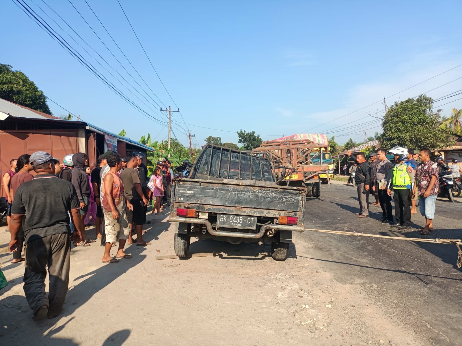Kecelakaan lalu lintas maut tersebut terjadi antara mobil pick up Daihatsu BK-8436-CT yang dikemudikan Levis Situmeang, 48 tahun, wiraswasta, warga Medan Selayang, dengan truk tronton Mitsubishi B-9106-UIS yang dikemudikan Muhammad Angga Kesuma, 22 tahun, warga Desa Sei Buluh, Teluk Mengkudu. Benturan keras terjadi di bagian depan kanan kedua kendaraan, menandakan tabrak depan dengan daya hantam tinggi.