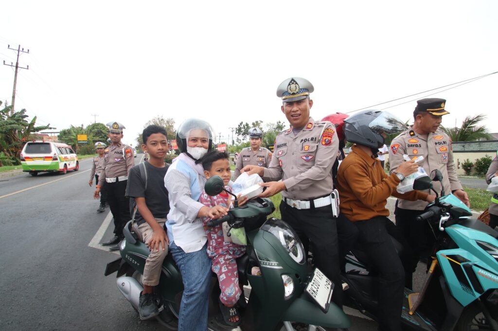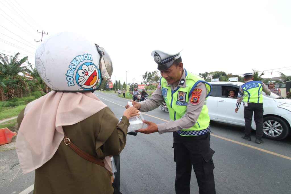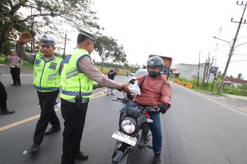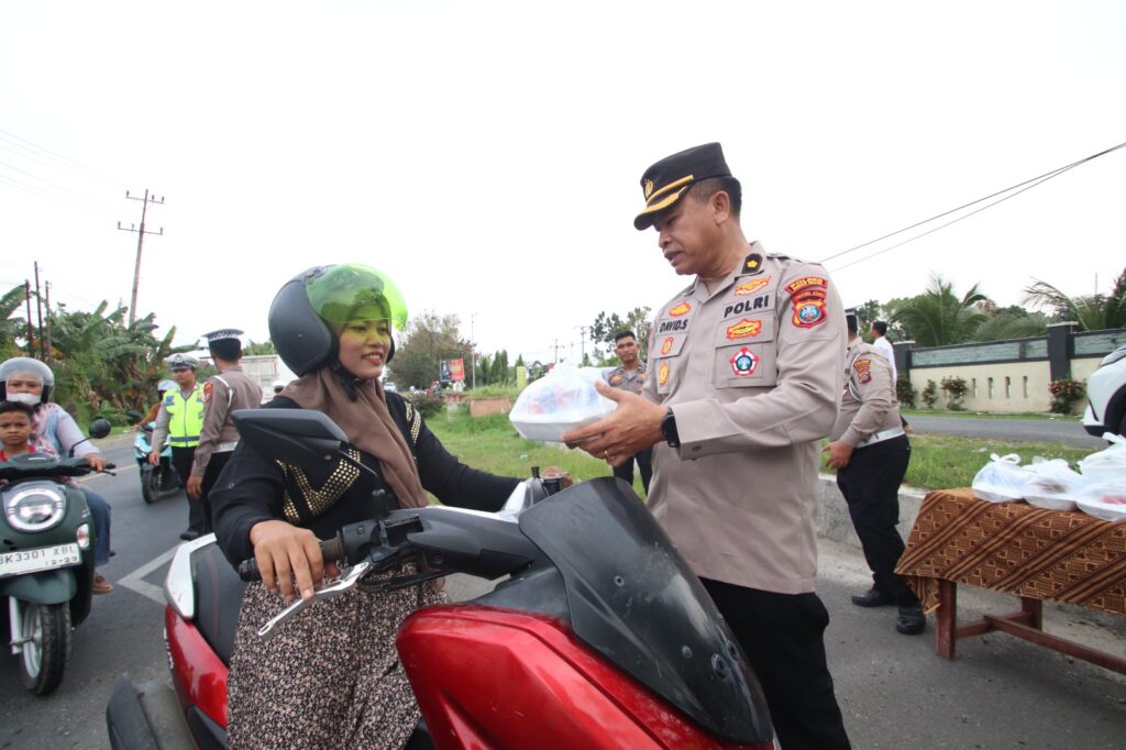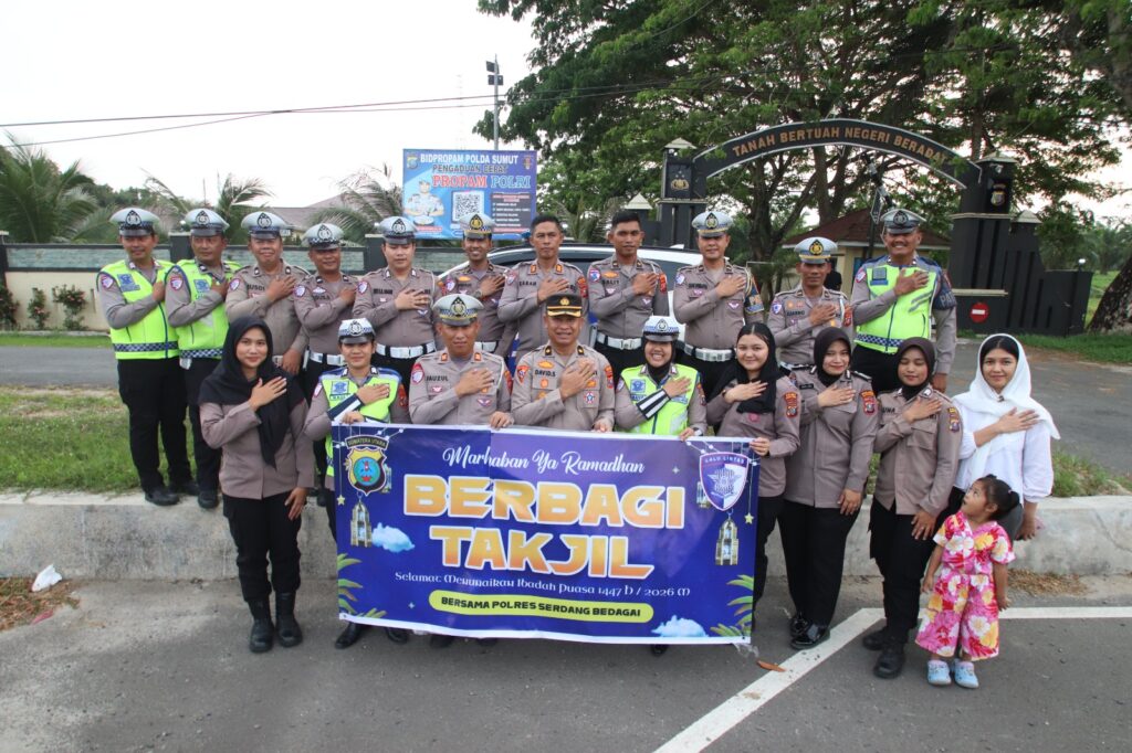 “Dalam semangat berbagi di bulan suci Ramadan, Satlantas Polres Sergai menggelar pembagian 100 takjil kepada pengendara. Ini diprioritaskan bagi mereka yang tertib dan taat berlalu lintas sebagai bentuk apresiasi,” ujarnya.