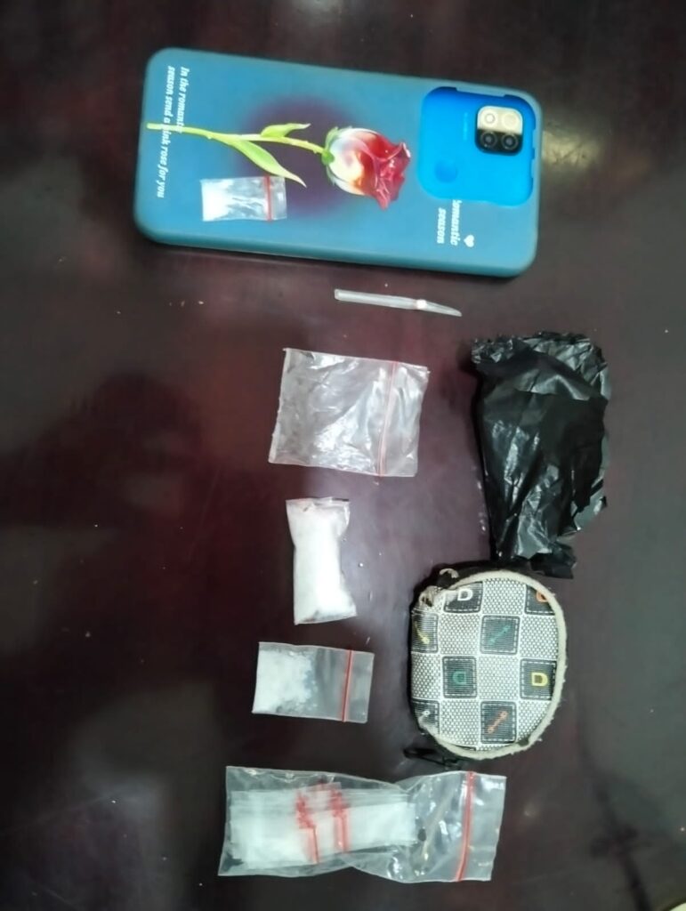 Petugas juga menyita dompet kecil, plastik hitam, pipet skop, bal plastik kosong, plastik besar kosong, dan satu unit HP Redmi warna biru.