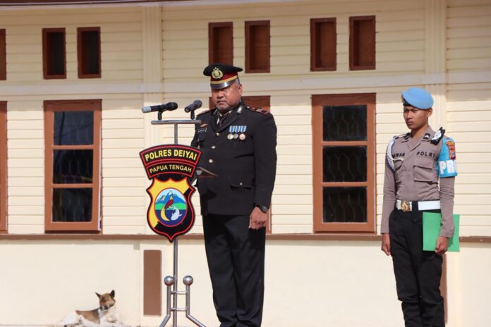 Deiyai | GeberNews.com – Wakapolres Deiyai, AKP M. Luther Ayomi, S. Sos, memimpin Upacara Peringatan Hari Bela Negara Ke-77 yang digelar di halaman Polres Deiyai pada Jumat, 19 Desember 2025, sebagai momentum meneguhkan semangat nasionalisme, pengabdian, dan loyalitas kepada Negara Kesatuan Republik Indonesia.